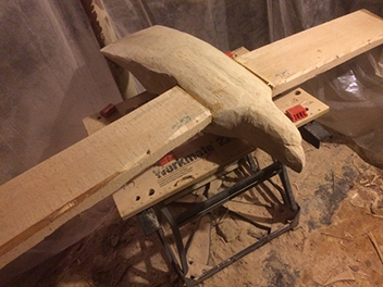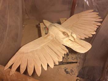 Shortening of the wings and carefully removing material to place the individual top layer of feathers. Also refining a gentle arch in the wings