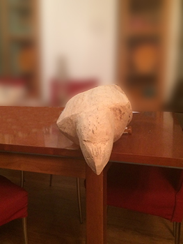 Finally out of the log, shaping the body and underside, smoothing out head, shoulders, belly and roughing in the hind legs and feet.